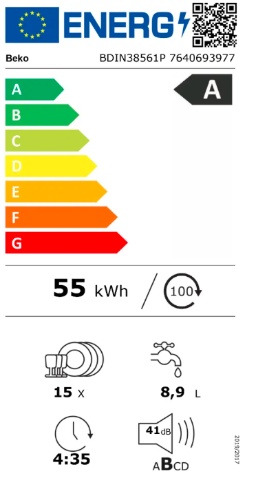 - Spotřeba energie (100 cyklů): 55 kWh