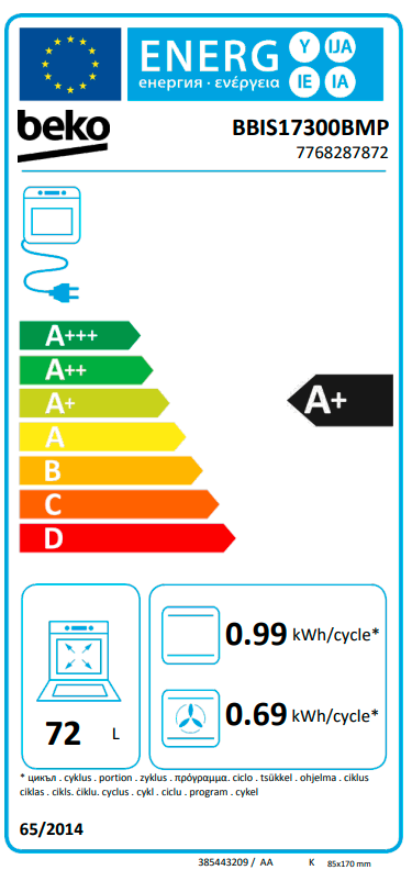 | Objem trouby L | 72 |